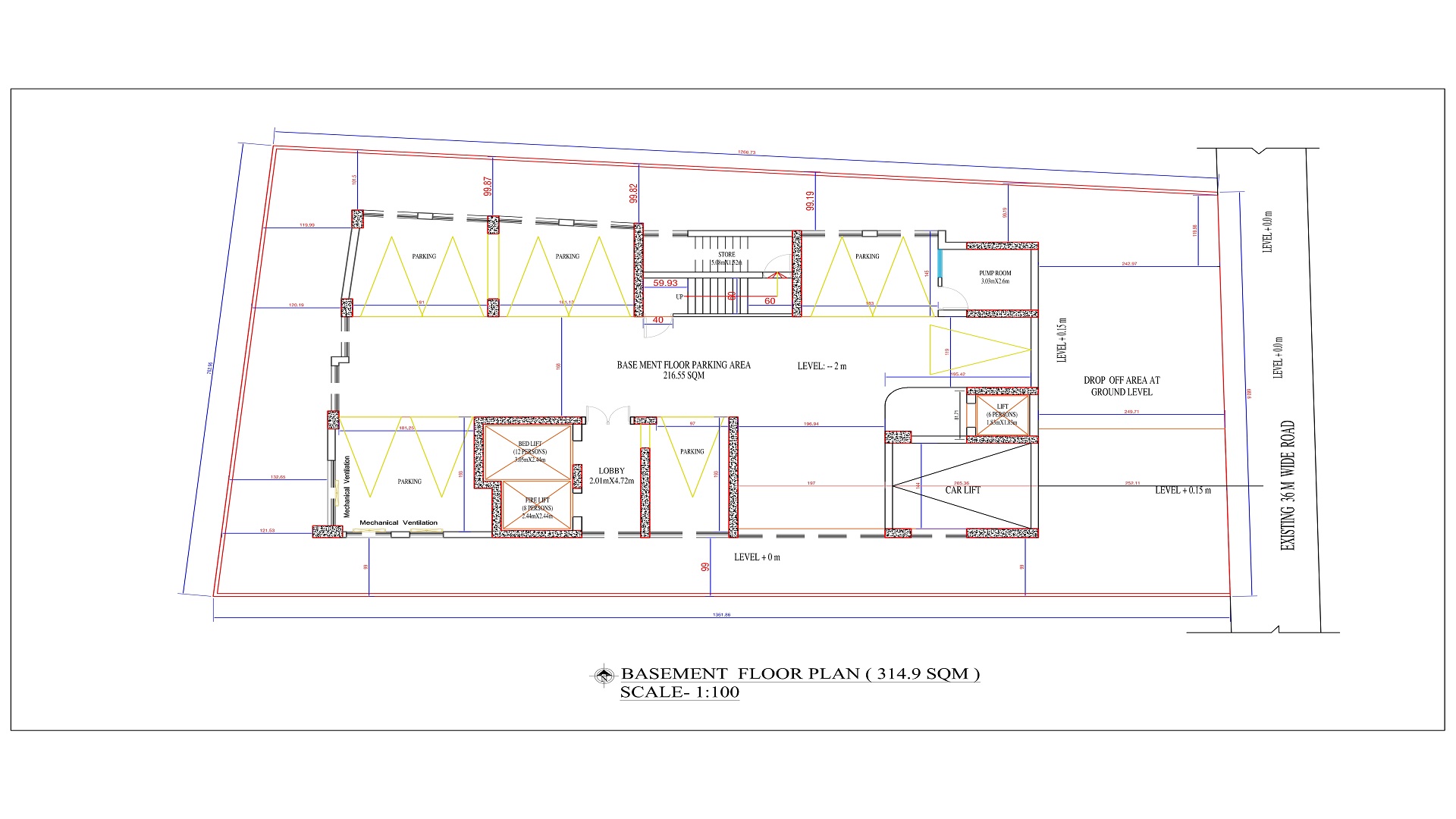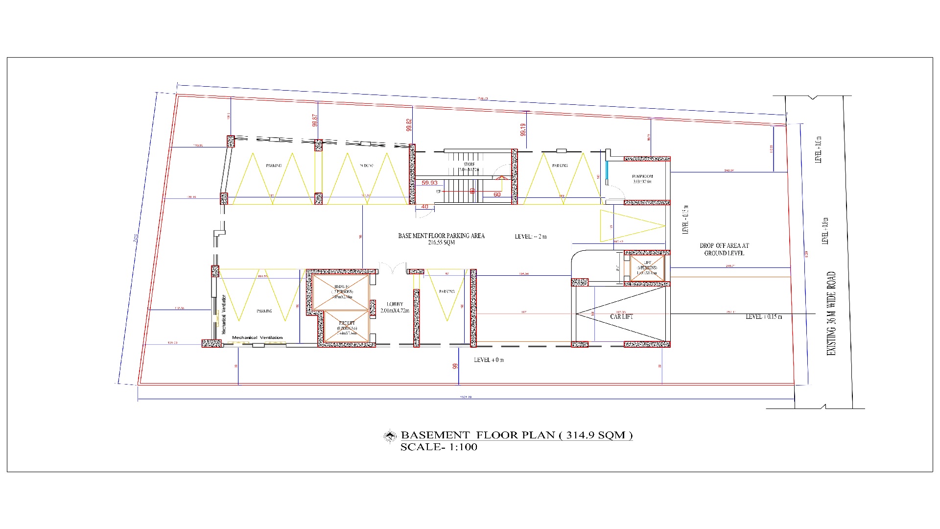 o Basement for parking and utility services