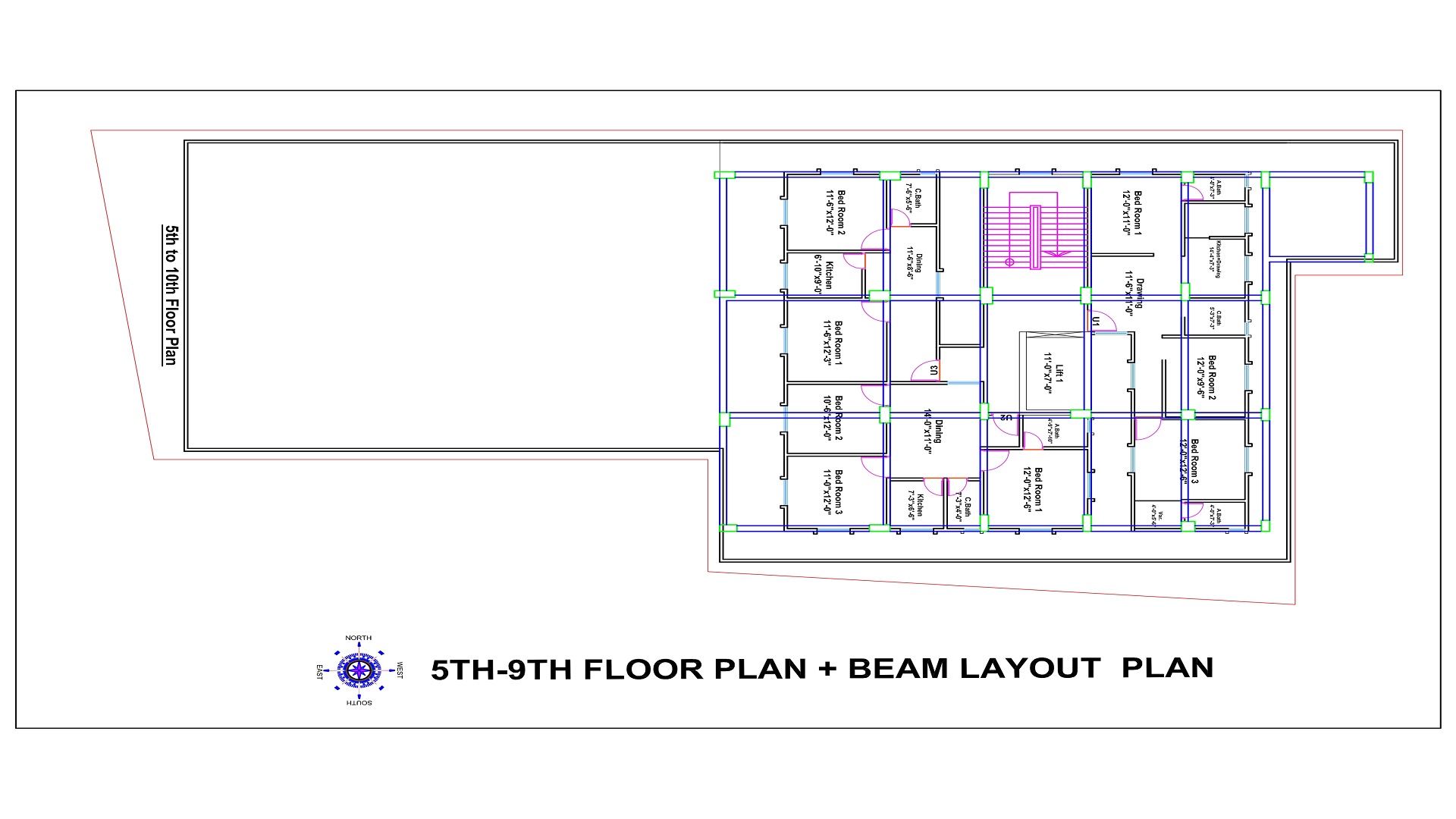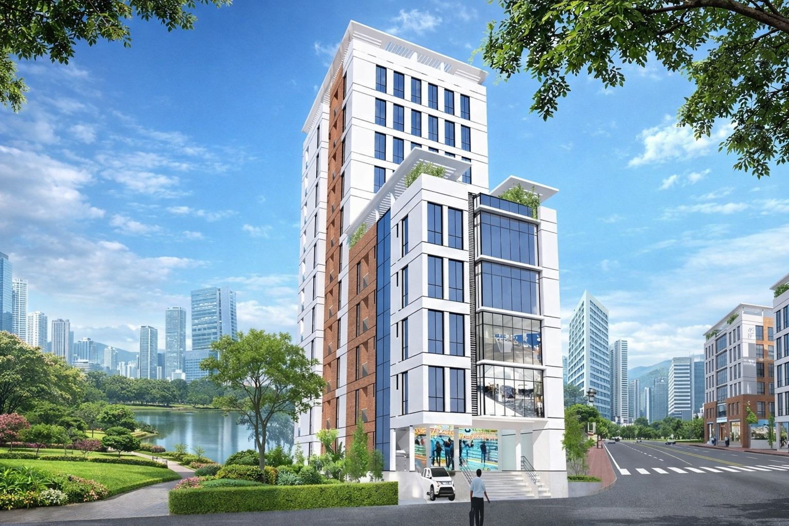 A G+12 residential building in Dhaka, Bangladesh, designed with modern aesthetics, functional living...
