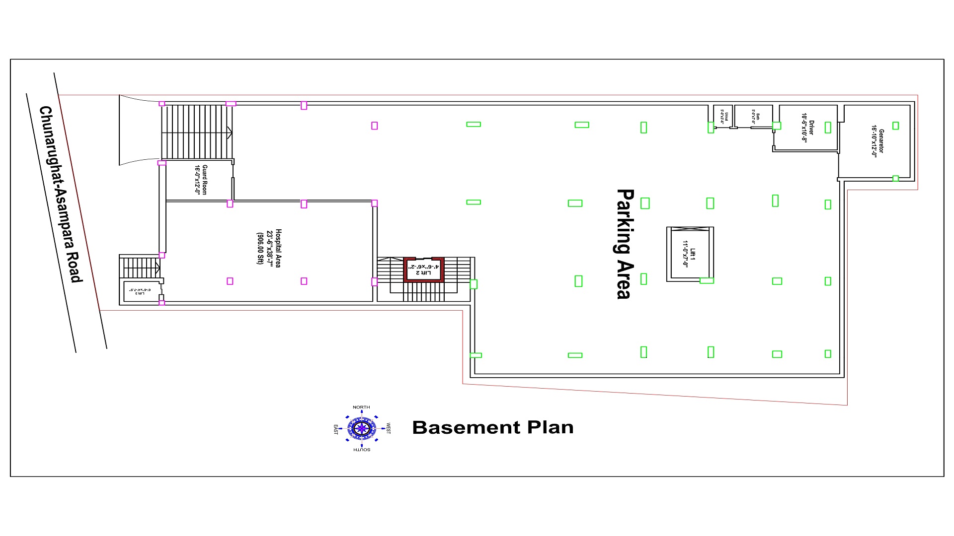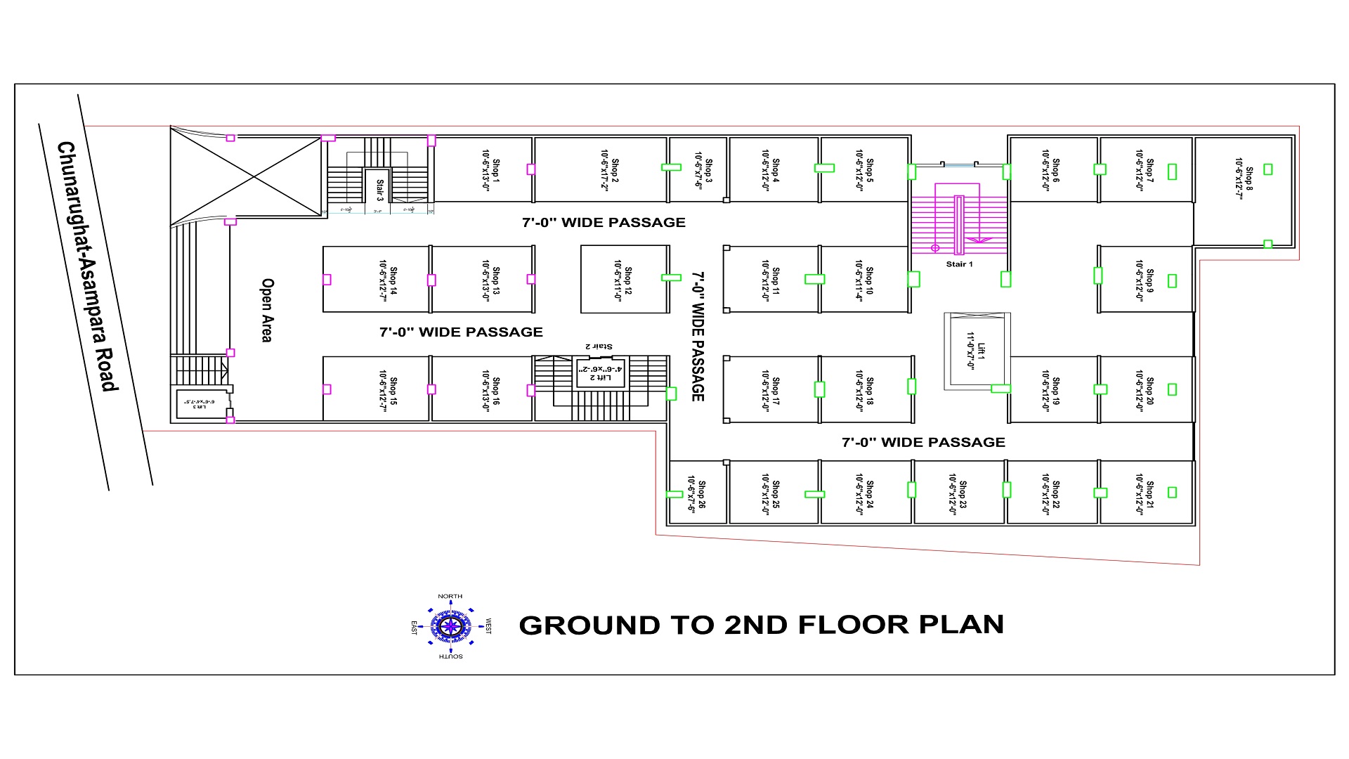 This project, commissioned by Md. Abdul Musabbir Gong, involves the architectural design of a 10-story (B+G+9) mixed-use building in Chunarughat, Habiganj. The structure seamlessly integrates commercial spaces (basement, ground, and select upper floors) with residential apartments, ensuring functionality and aesthetic appeal.