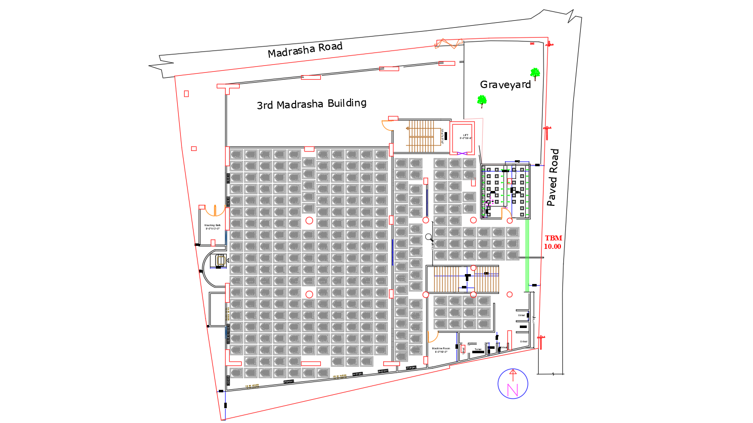 The design focuses on maximizing prayer capacity, ensuring proper circulation, natural ventilation, and adequate lighting. Special attention is given to structural stability, acoustic considerations for clear sound distribution, and a façade that reflects Islamic architectural identity with modern construction techniques.