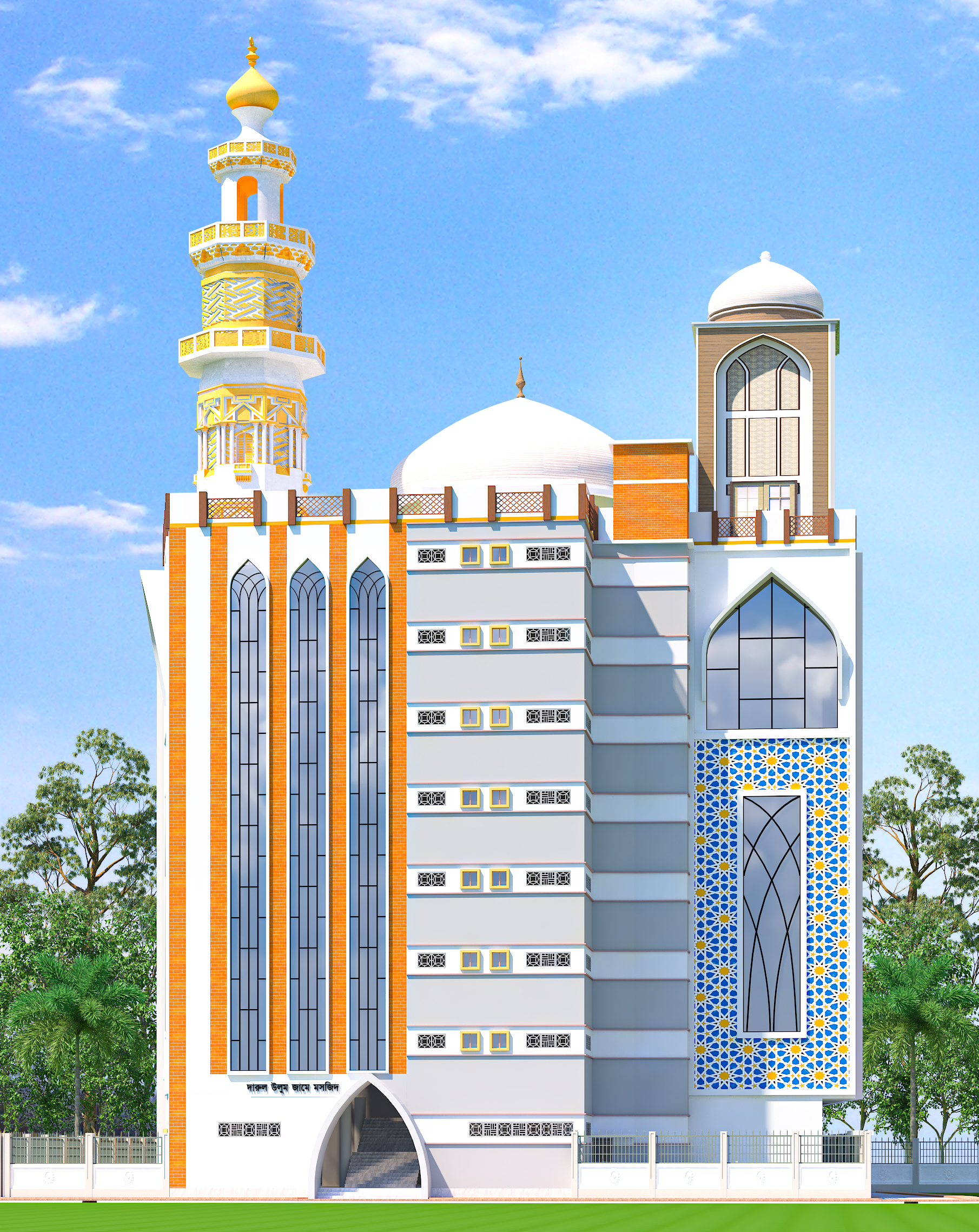 Darul Ulum Jame Mosjid is a proposed multi-storied mosque building designed to accommodate a large congregation while maintaining spiritual ambiance and architectural dignity. The G+7 structure is planned to serve both religious and community functions.